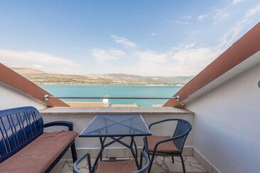 Appartamento può accogliere 5 ospiti. I letti sono disposti nelle camere da letto che sono 2, e nella camera di soggiorno, su 50m2. Gli ospiti hanno a disposizione il proprio terrazzo per godere nelle calde serate estive. Dall'appartamento si gode di una vista sul mare. Si può preparare il cibo utilizzando il barbecue comune.