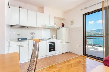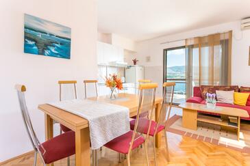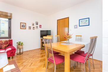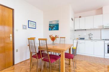 Appartamento può accogliere 6 ospiti. I letti sono disposti nelle camere da letto che sono 2, e nella camera di soggiorno, su 57m2. Gli ospiti hanno a disposizione il proprio terrazzo per godere nelle calde serate estive. Dall'appartamento si gode di una vista sul mare. Si può preparare il cibo utilizzando il barbecue comune.