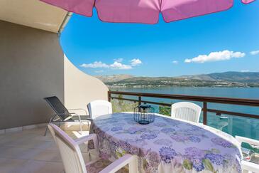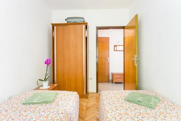 Appartamento può accogliere 6 ospiti. I letti sono disposti nelle camere da letto che sono 2, e nella camera di soggiorno, su 57m2. Gli ospiti hanno a disposizione il proprio terrazzo per godere nelle calde serate estive. Dall'appartamento si gode di una vista sul mare. Si può preparare il cibo utilizzando il barbecue comune.