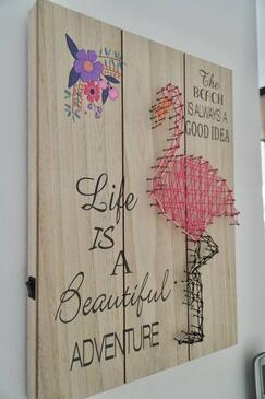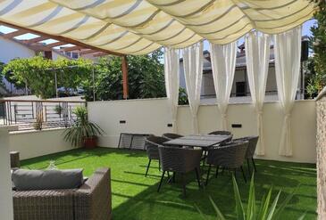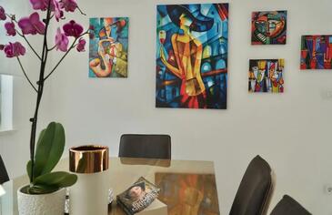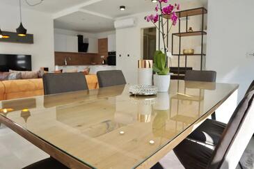 Casa può accogliere 7 ospiti. I letti sono disposti nelle camere da letto che sono 4, su 140m2. Gli ospiti hanno a disposizione il proprio terrazzo per godere nelle calde serate estive. Dalla casa si gode di una vista sul mare.