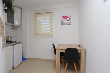 Appartamento può accogliere 5 ospiti. I letti sono disposti nelle camere da letto che sono 2, e nella camera di soggiorno, su 44m2. Gli ospiti hanno a disposizione il proprio balcone per godere delle calde serate estive. Dall'appartamento si gode di una vista sul mare. Si può preparare il cibo utilizzando il barbecue comune.