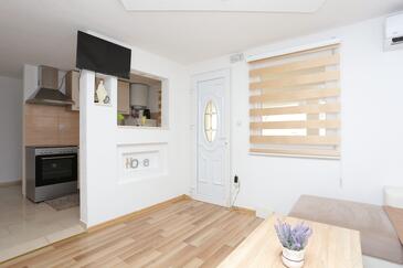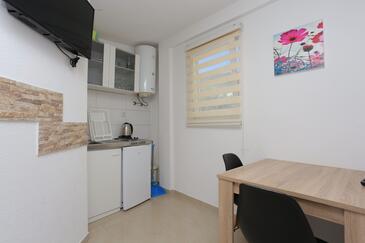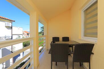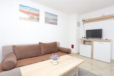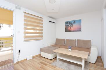 Appartamento può accogliere 5 ospiti. I letti sono disposti nelle camere da letto che sono 2, e nella camera di soggiorno, su 44m2. Gli ospiti hanno a disposizione il proprio balcone per godere delle calde serate estive. Dall'appartamento si gode di una vista sul mare. Si può preparare il cibo utilizzando il barbecue comune.