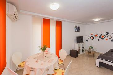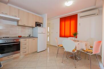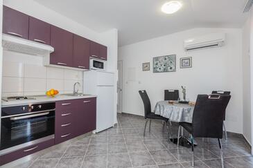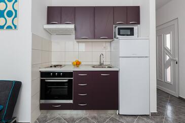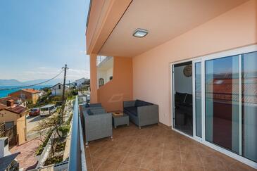 Appartamento può accogliere 4 ospiti. I letti sono disposti nelle camere da letto che sono 2, su 48m2. Gli ospiti hanno a disposizione il proprio terrazzo per godere nelle calde serate estive. Dall'appartamento si gode di una vista sul mare. Si può preparare il cibo utilizzando il barbecue comune.