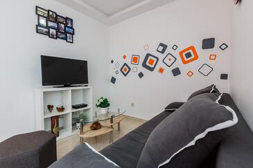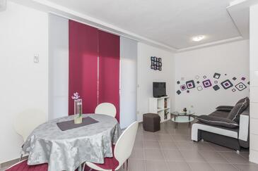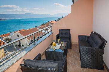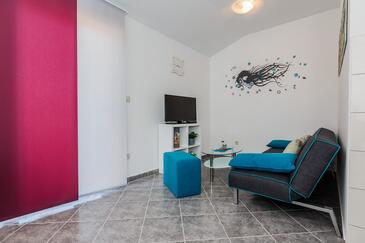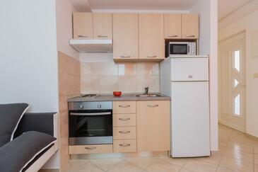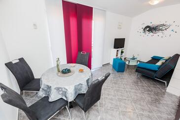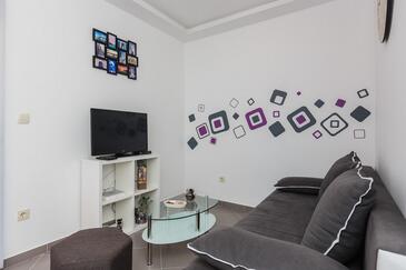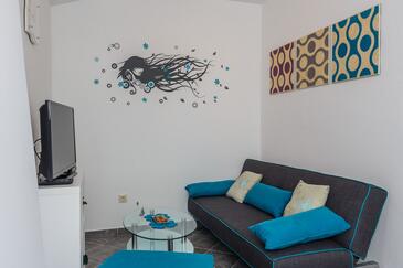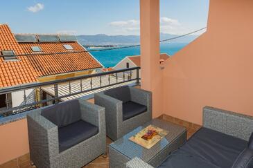 Appartamento può accogliere 4 ospiti. I letti sono disposti nelle camere da letto che sono 2, su 48m2. Gli ospiti hanno a disposizione il proprio terrazzo per godere nelle calde serate estive. Dall'appartamento si gode di una vista sul mare. Si può preparare il cibo utilizzando il barbecue comune.