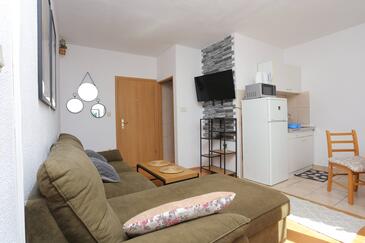 Appartamento può accogliere 4 ospiti. I letti sono disposti nelle camere da letto che sono 1, e nella camera di soggiorno, su 37m2. Gli ospiti hanno a disposizione il proprio terrazzo per godere nelle calde serate estive. Dall'appartamento si gode di una vista sul mare. Si può preparare il cibo utilizzando il barbecue comune.
