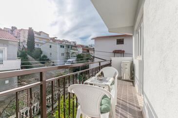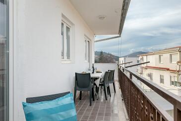Appartamento può accogliere 6 ospiti. I letti sono disposti nelle camere da letto che sono 3, su 78m2. Gli ospiti hanno a disposizione il proprio balcone per godere delle calde serate estive. Dall'appartamento si gode di una vista sul mare.