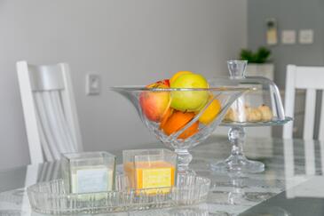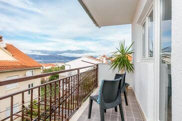Appartamento può accogliere 6 ospiti. I letti sono disposti nelle camere da letto che sono 3, su 78m2. Gli ospiti hanno a disposizione il proprio balcone per godere delle calde serate estive. Dall'appartamento si gode di una vista sul mare.