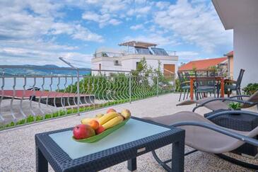 Appartamento può accogliere 4 ospiti. I letti sono disposti nelle camere da letto che sono 2, su 101m2. Gli ospiti hanno a disposizione il proprio terrazzo per godere nelle calde serate estive. Dall'appartamento si gode di una vista sul mare. Si può preparare il cibo utilizzando il barbecue comune.