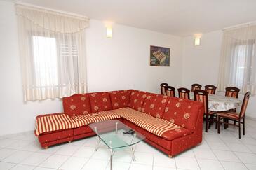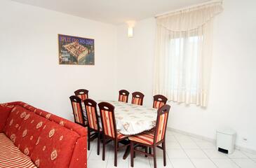 Appartamento può accogliere 6 ospiti. I letti sono disposti nelle camere da letto che sono 3, su 74m2. Gli ospiti hanno a disposizione il proprio terrazzo per godere nelle calde serate estive. Dall'appartamento si gode di una vista sul mare. Si può preparare il cibo utilizzando il barbecue comune. Nell'unità di alloggio si possono portare gli animali domestici senza alcun pagamento supplementare.