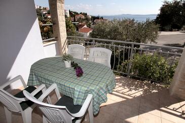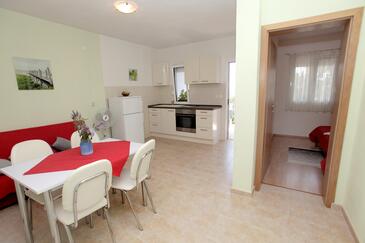 Appartamento può accogliere 4 ospiti. I letti sono disposti nelle camere da letto che sono 2, su 44m2. Gli ospiti hanno a disposizione il proprio terrazzo per godere nelle calde serate estive. Dall'appartamento si gode di una vista sul mare. Si può preparare il cibo utilizzando il barbecue comune.