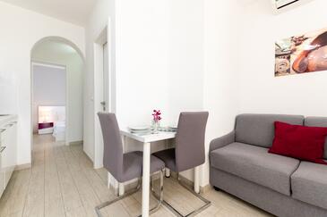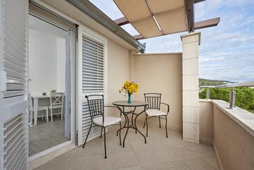 Appartamento può accogliere 2 ospiti. I letti sono disposti nelle camere da letto che sono 1, su 28m2. Gli ospiti hanno a disposizione il proprio terrazzo per godere nelle calde serate estive. Dall'appartamento si gode di una vista sul mare. Si può preparare il cibo utilizzando il barbecue comune. Nell'unità di alloggio si possono portare gli animali domestici con un pagamento supplementare.