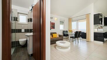 Appartamento può accogliere 4 ospiti. I letti sono disposti nelle camere da letto che sono 1, e nella camera di soggiorno, su 43m2. Gli ospiti hanno a disposizione il proprio terrazzo per godere nelle calde serate estive. Dall'appartamento si gode di una vista sul mare. Durante il soggiorno gli ospiti possono utilizzare la piscina comune. Arrivati nell'unità d'alloggio i clienti devono pagare un deposito (il prezzo è indicato sul sito).