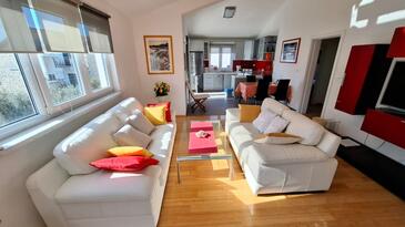 Appartamento può accogliere 4 ospiti. I letti sono disposti nelle camere da letto che sono 2, su 90m2. Gli ospiti hanno a disposizione il proprio terrazzo per godere nelle calde serate estive. Dall'appartamento si gode di una vista sul mare.