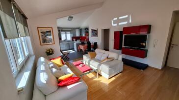 Appartamento può accogliere 4 ospiti. I letti sono disposti nelle camere da letto che sono 2, su 90m2. Gli ospiti hanno a disposizione il proprio terrazzo per godere nelle calde serate estive. Dall'appartamento si gode di una vista sul mare.
