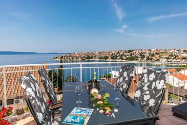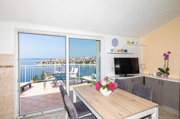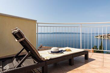 Appartamento può accogliere 4 ospiti. I letti sono disposti nelle camere da letto che sono 2, su 52m2. Gli ospiti hanno a disposizione il proprio terrazzo per godere nelle calde serate estive. Dall'appartamento si gode di una vista sul mare. Si può preparare il cibo utilizzando il barbecue comune. Durante il soggiorno gli ospiti possono utilizzare la piscina comune.