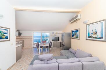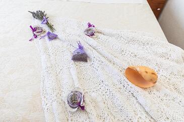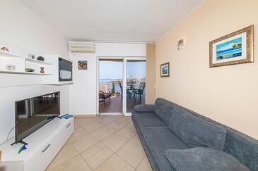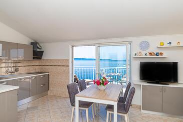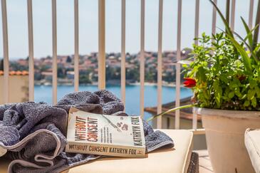 Appartamento può accogliere 4 ospiti. I letti sono disposti nelle camere da letto che sono 2, su 52m2. Gli ospiti hanno a disposizione il proprio terrazzo per godere nelle calde serate estive. Dall'appartamento si gode di una vista sul mare. Si può preparare il cibo utilizzando il barbecue comune. Durante il soggiorno gli ospiti possono utilizzare la piscina comune.