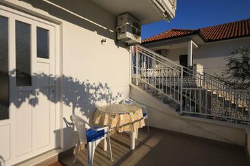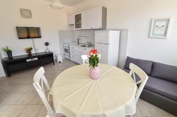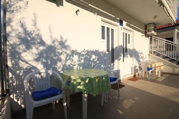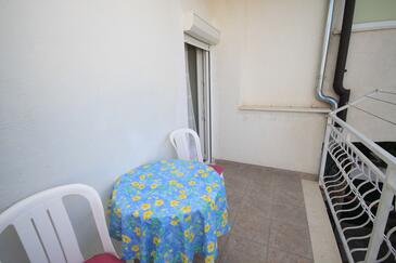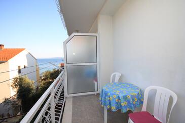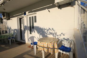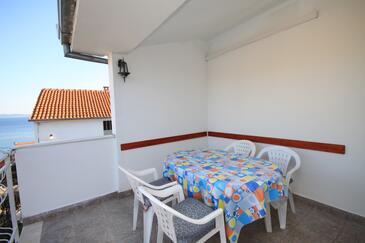 Appartamento può accogliere 5 ospiti. I letti sono disposti nelle camere da letto che sono 2, e nella sala da pranzo, su 45m2. Gli ospiti hanno a disposizione il proprio terrazzo per godere nelle calde serate estive. Dall'appartamento si gode di una vista sul mare. Si può preparare il cibo utilizzando il barbecue comune.
