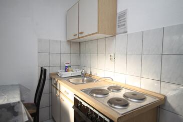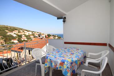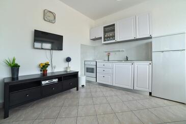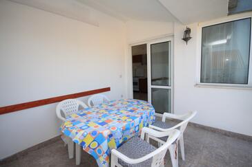 Appartamento può accogliere 5 ospiti. I letti sono disposti nelle camere da letto che sono 2, e nella sala da pranzo, su 45m2. Gli ospiti hanno a disposizione il proprio terrazzo per godere nelle calde serate estive. Dall'appartamento si gode di una vista sul mare. Si può preparare il cibo utilizzando il barbecue comune.