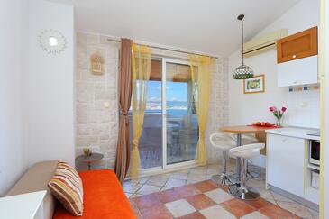 Appartamento può accogliere 4 ospiti. I letti sono disposti nelle camere da letto che sono 1, e nella camera di soggiorno, su 35m2. Gli ospiti hanno a disposizione il proprio terrazzo per godere nelle calde serate estive. Dall'appartamento si gode di una vista sul mare. Si può preparare il cibo utilizzando il barbecue comune. Nell'unità di alloggio si possono portare gli animali domestici senza alcun pagamento supplementare.