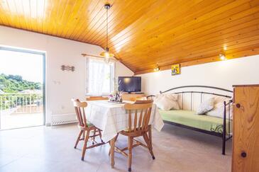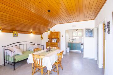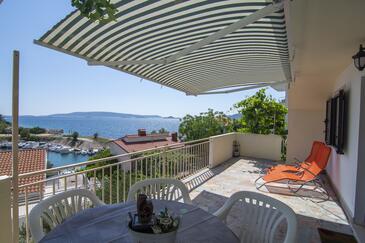 Appartamento può accogliere 5 ospiti. I letti sono disposti nelle camere da letto che sono 2, e nella sala da pranzo, su 47m2. Gli ospiti hanno a disposizione il proprio terrazzo per godere nelle calde serate estive. Dall'appartamento si gode di una vista sul mare. Si può preparare il cibo utilizzando il barbecue comune.