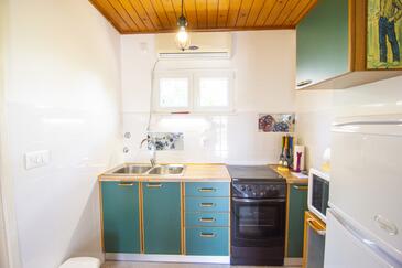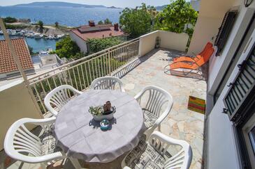 Appartamento può accogliere 5 ospiti. I letti sono disposti nelle camere da letto che sono 2, e nella sala da pranzo, su 47m2. Gli ospiti hanno a disposizione il proprio terrazzo per godere nelle calde serate estive. Dall'appartamento si gode di una vista sul mare. Si può preparare il cibo utilizzando il barbecue comune.