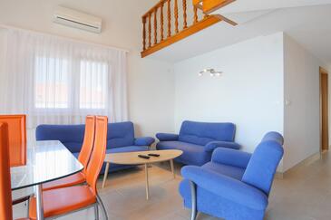 Appartamento può accogliere 4 ospiti. I letti sono disposti nelle camere da letto che sono 2, su 44m2. Gli ospiti hanno a disposizione il proprio balcone per godere delle calde serate estive. Dall'appartamento si gode di una vista sul mare. Si può preparare il cibo utilizzando il barbecue comune.