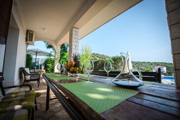 Casa può accogliere 9 ospiti. I letti sono disposti nelle camere da letto che sono 4, e nella camera di soggiorno, su 122m2. Gli ospiti hanno a disposizione il proprio terrazzo per godere nelle calde serate estive. Dalla casa si gode di una vista sul mare. Per il piacere totale e il relax c'è il barbecue privato solo per gli ospiti di quest'alloggio. Durante il soggiorno gli ospiti si possono rilassare nella piscina privata.