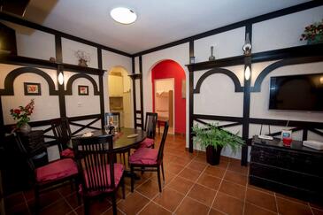 Casa può accogliere 9 ospiti. I letti sono disposti nelle camere da letto che sono 4, e nella camera di soggiorno, su 122m2. Gli ospiti hanno a disposizione il proprio terrazzo per godere nelle calde serate estive. Dalla casa si gode di una vista sul mare. Per il piacere totale e il relax c'è il barbecue privato solo per gli ospiti di quest'alloggio. Durante il soggiorno gli ospiti si possono rilassare nella piscina privata.