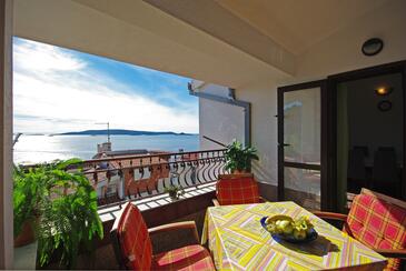 Appartamento può accogliere 4 ospiti. I letti sono disposti nelle camere da letto che sono 2, su 53m2. Gli ospiti hanno a disposizione il proprio terrazzo per godere nelle calde serate estive. Dall'appartamento si gode di una vista sul mare.