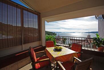 Appartamento può accogliere 4 ospiti. I letti sono disposti nelle camere da letto che sono 2, su 53m2. Gli ospiti hanno a disposizione il proprio terrazzo per godere nelle calde serate estive. Dall'appartamento si gode di una vista sul mare.