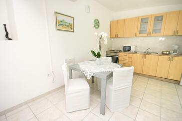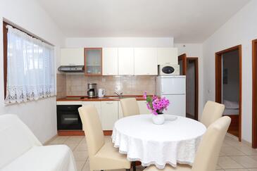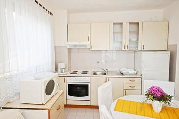 Appartamento può accogliere 6 ospiti. I letti sono disposti nelle camere da letto che sono 3, su 48m2. Gli ospiti hanno a disposizione il proprio terrazzo per godere nelle calde serate estive. Dall'appartamento si gode di una vista sul mare. Per il piacere totale e il relax c'è il barbecue privato solo per gli ospiti di quest'alloggio. Nell'unità di alloggio si possono portare gli animali domestici con un pagamento supplementare.