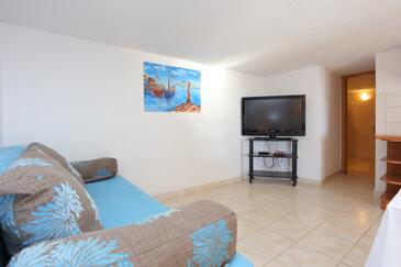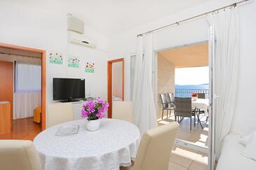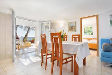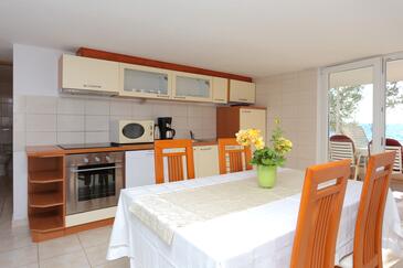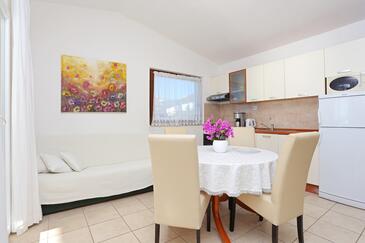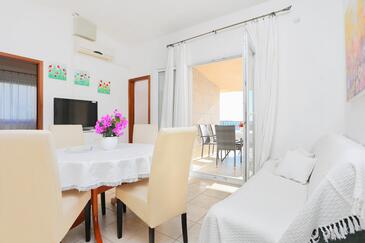 Appartamento può accogliere 6 ospiti. I letti sono disposti nelle camere da letto che sono 3, su 48m2. Gli ospiti hanno a disposizione il proprio terrazzo per godere nelle calde serate estive. Dall'appartamento si gode di una vista sul mare. Per il piacere totale e il relax c'è il barbecue privato solo per gli ospiti di quest'alloggio. Nell'unità di alloggio si possono portare gli animali domestici con un pagamento supplementare.