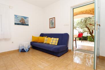 Appartamento può accogliere 4 ospiti. I letti sono disposti nelle camere da letto che sono 2, su 48m2. Gli ospiti hanno a disposizione il proprio terrazzo per godere nelle calde serate estive. Si può preparare il cibo utilizzando il barbecue comune.
