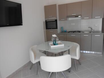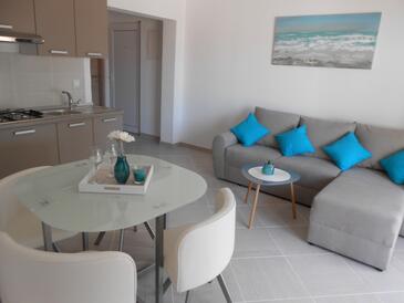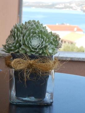 Appartamento può accogliere 4 ospiti. I letti sono disposti nelle camere da letto che sono 2, su 43m2. Gli ospiti hanno a disposizione il proprio terrazzo per godere nelle calde serate estive. Dall'appartamento si gode di una vista sul mare. Si può preparare il cibo utilizzando il barbecue comune.
