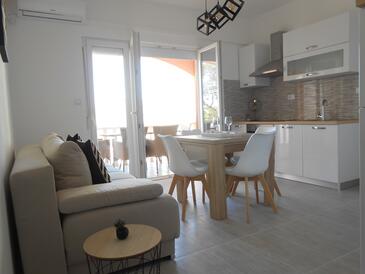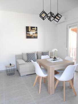 Appartamento può accogliere 4 ospiti. I letti sono disposti nelle camere da letto che sono 2, su 43m2. Gli ospiti hanno a disposizione il proprio terrazzo per godere nelle calde serate estive. Dall'appartamento si gode di una vista sul mare. Si può preparare il cibo utilizzando il barbecue comune.