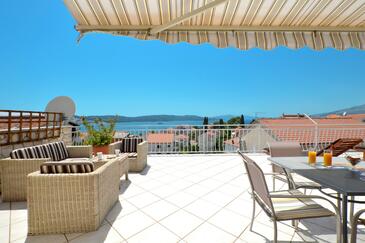 Appartamento può accogliere 4 ospiti. I letti sono disposti nelle camere da letto che sono 2, su 72m2. Gli ospiti hanno a disposizione il proprio terrazzo per godere nelle calde serate estive. Dall'appartamento si gode di una vista sul mare. Si può preparare il cibo utilizzando il barbecue comune.