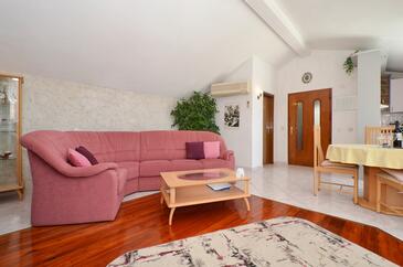 Appartamento può accogliere 4 ospiti. I letti sono disposti nelle camere da letto che sono 2, su 72m2. Gli ospiti hanno a disposizione il proprio terrazzo per godere nelle calde serate estive. Dall'appartamento si gode di una vista sul mare. Si può preparare il cibo utilizzando il barbecue comune.
