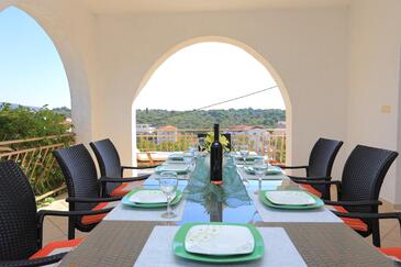 Appartamento può accogliere 8 ospiti. I letti sono disposti nelle camere da letto che sono 3, e nella camera di soggiorno, su 73m2. Gli ospiti hanno a disposizione il proprio terrazzo per godere nelle calde serate estive. Dall'appartamento si gode di una vista sul mare. Si può preparare il cibo utilizzando il barbecue comune. Durante il soggiorno gli ospiti possono utilizzare la piscina comune.