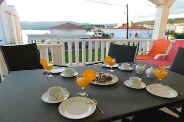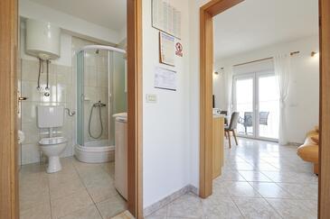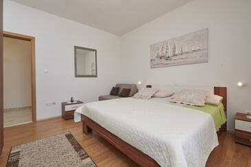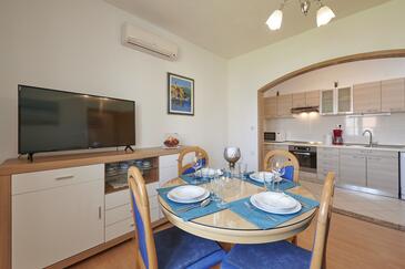 Appartamento può accogliere 5 ospiti. I letti sono disposti nelle camere da letto che sono 2, e nella camera di soggiorno, su 43m2. Gli ospiti hanno a disposizione il proprio terrazzo per godere nelle calde serate estive. Dall'appartamento si gode di una vista sul mare. Si può preparare il cibo utilizzando il barbecue comune.