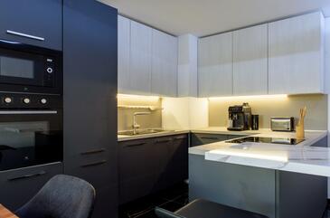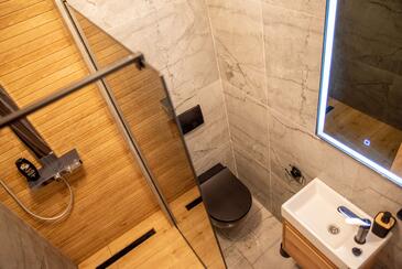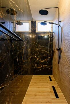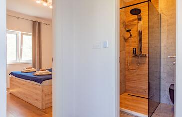 Casa può accogliere 6 ospiti. I letti sono disposti nelle camere da letto che sono 2, e nella camera di soggiorno, su 95m2. Gli ospiti hanno a disposizione il proprio terrazzo per godere nelle calde serate estive. Dalla casa si gode di una vista sul mare. Per il piacere totale e il relax c'è il barbecue privato solo per gli ospiti di quest'alloggio. Nell'unità di alloggio si possono portare gli animali domestici con un pagamento supplementare.