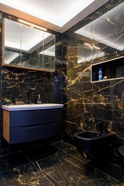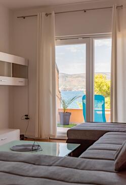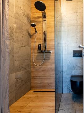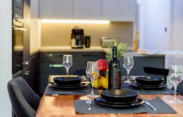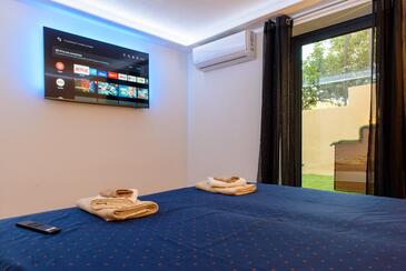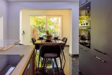 Casa può accogliere 6 ospiti. I letti sono disposti nelle camere da letto che sono 2, e nella camera di soggiorno, su 95m2. Gli ospiti hanno a disposizione il proprio terrazzo per godere nelle calde serate estive. Dalla casa si gode di una vista sul mare. Per il piacere totale e il relax c'è il barbecue privato solo per gli ospiti di quest'alloggio. Nell'unità di alloggio si possono portare gli animali domestici con un pagamento supplementare.