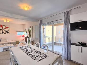 Appartamento può accogliere 6 ospiti. I letti sono disposti nelle camere da letto che sono 3, su 75m2. Gli ospiti hanno a disposizione il proprio terrazzo per godere nelle calde serate estive. Dall'appartamento si gode di una vista sul mare. Si può preparare il cibo utilizzando il barbecue comune. Durante il soggiorno gli ospiti possono utilizzare la piscina comune.