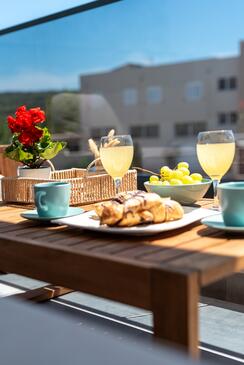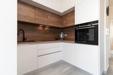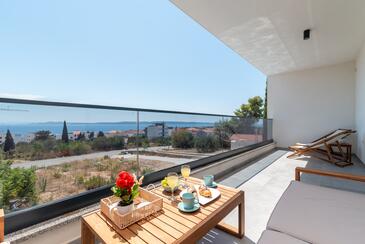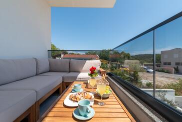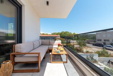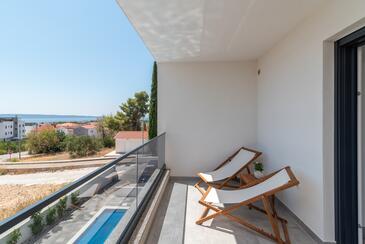 Appartamento può accogliere 4 ospiti. I letti sono disposti nelle camere da letto che sono 2, su 56m2. Gli ospiti hanno a disposizione il proprio balcone per godere delle calde serate estive. Dall'appartamento si gode di una vista sul mare. Durante il soggiorno gli ospiti possono utilizzare la piscina comune.
