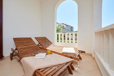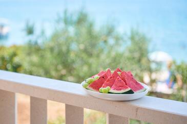Appartamento può accogliere 5 ospiti. I letti sono disposti nelle camere da letto che sono 2, e nella camera di soggiorno, su 73m2. Gli ospiti hanno a disposizione il proprio terrazzo per godere nelle calde serate estive. Dall'appartamento si gode di una vista sul mare. Si può preparare il cibo utilizzando il barbecue comune.
