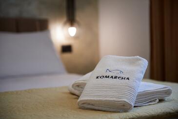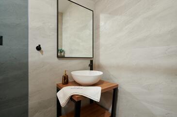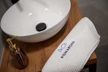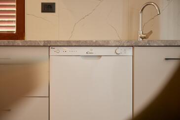 Appartamento può accogliere 5 ospiti. I letti sono disposti nelle camere da letto che sono 2, e nella camera di soggiorno, su 73m2. Gli ospiti hanno a disposizione il proprio terrazzo per godere nelle calde serate estive. Dall'appartamento si gode di una vista sul mare. Si può preparare il cibo utilizzando il barbecue comune.