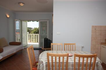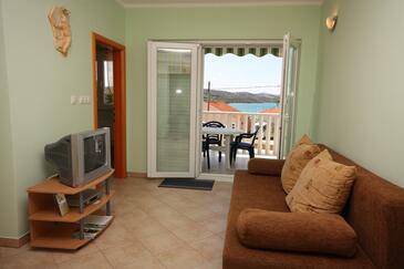 Appartamento può accogliere 4 ospiti. I letti sono disposti nelle camere da letto che sono 2, su 50m2. Gli ospiti hanno a disposizione il proprio terrazzo per godere nelle calde serate estive. Dall'appartamento si gode di una vista sul mare. Si può preparare il cibo utilizzando il barbecue comune. Durante il soggiorno gli ospiti possono utilizzare la piscina comune.
