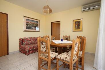 Appartamento può accogliere 10 ospiti. I letti sono disposti nelle camere da letto che sono 4, e nella sala da pranzo, su 74m2. Gli ospiti hanno a disposizione il proprio balcone per godere delle calde serate estive. Dall'appartamento si gode di una vista sul mare. Si può preparare il cibo utilizzando il barbecue comune.