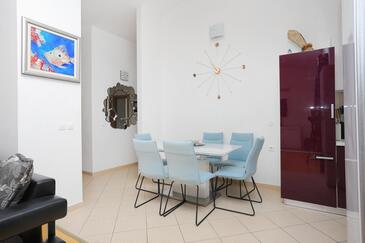 Appartamento può accogliere 7 ospiti. I letti sono disposti nelle camere da letto che sono 3, e nella camera di soggiorno, su 80m2. Gli ospiti hanno a disposizione il proprio terrazzo per godere nelle calde serate estive. Dall'appartamento si gode di una vista sul mare. Si può preparare il cibo utilizzando il barbecue comune. Arrivati nell'unità d'alloggio i clienti devono pagare un deposito (il prezzo è indicato sul sito).