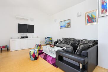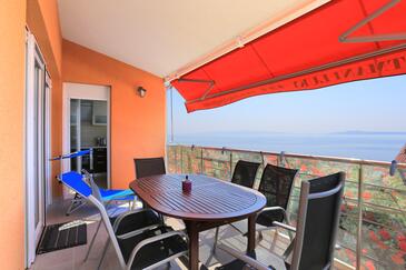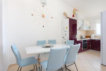 Appartamento può accogliere 7 ospiti. I letti sono disposti nelle camere da letto che sono 3, e nella camera di soggiorno, su 80m2. Gli ospiti hanno a disposizione il proprio terrazzo per godere nelle calde serate estive. Dall'appartamento si gode di una vista sul mare. Si può preparare il cibo utilizzando il barbecue comune. Arrivati nell'unità d'alloggio i clienti devono pagare un deposito (il prezzo è indicato sul sito).