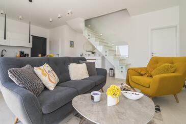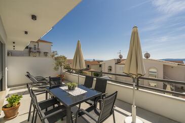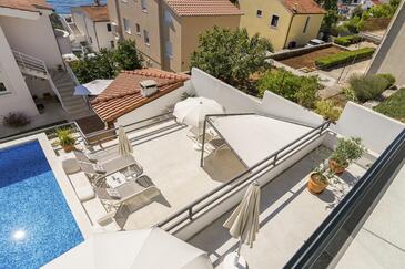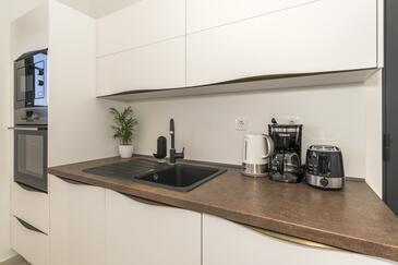 Appartamento può accogliere 4 ospiti. I letti sono disposti nelle camere da letto che sono 2, su 76m2. Gli ospiti hanno a disposizione il proprio terrazzo per godere nelle calde serate estive. Dall'appartamento si gode di una vista sul mare. Per il piacere totale e il relax c'è il barbecue privato solo per gli ospiti di quest'alloggio. Durante il soggiorno gli ospiti possono utilizzare la piscina comune.